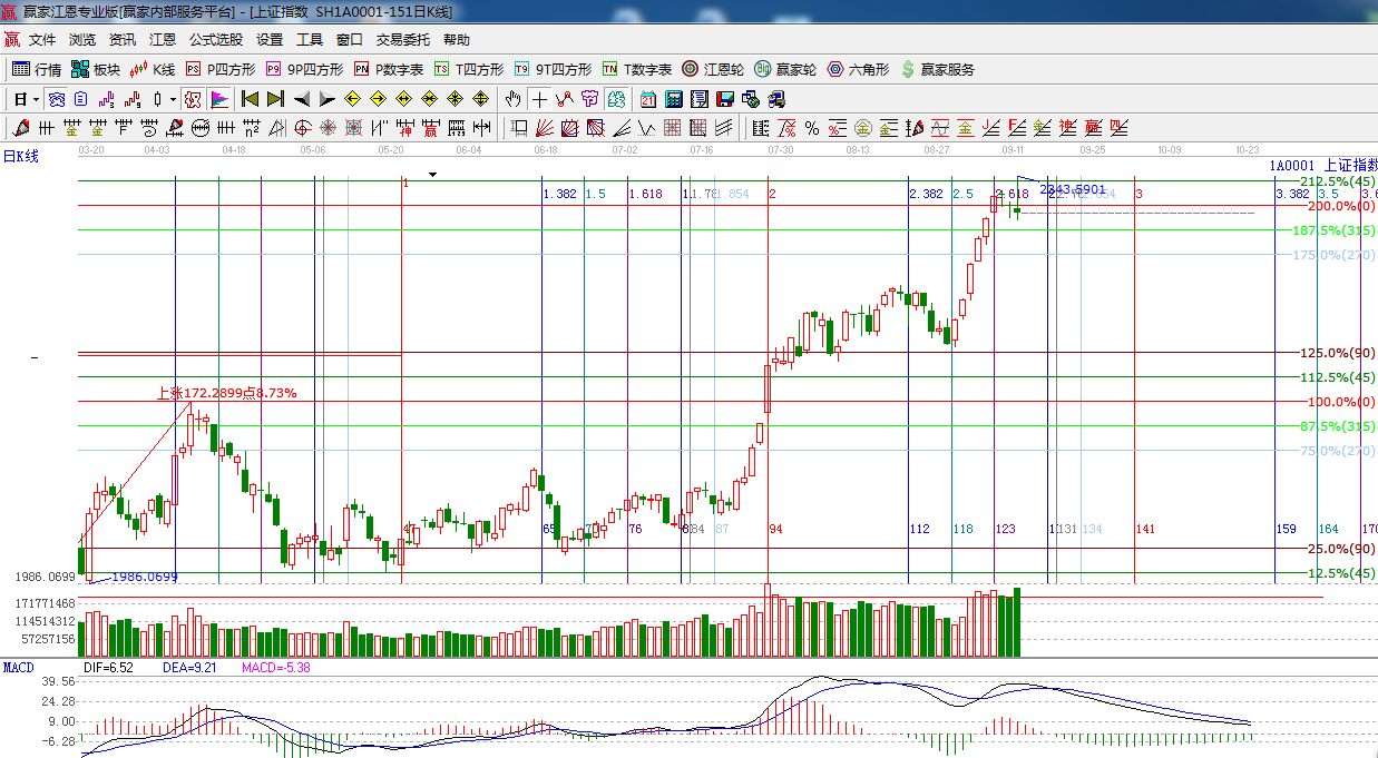 ☆依據(jù)贏家江恩系統(tǒng)黃金時間周期線提示:下一時間窗口是9月18日,9月23日。