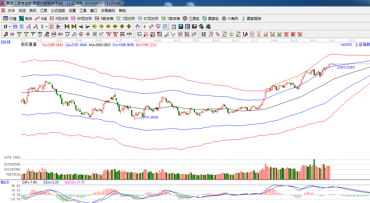 極反通道提示:極反通道外軌線之上震蕩上行, 線上支撐,線下壓力,支撐此位置不破,短線看多。