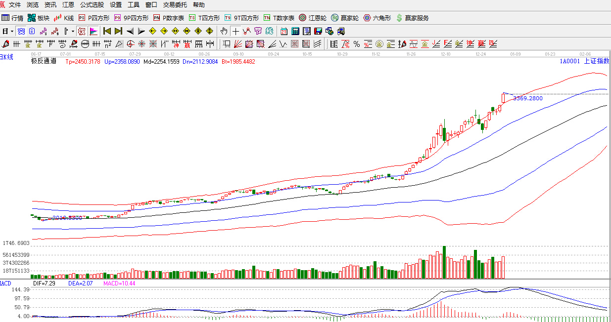 極反通道提示:指數(shù)繼續(xù)強(qiáng)勢上行,在創(chuàng)新高,短線持續(xù)強(qiáng)勢。