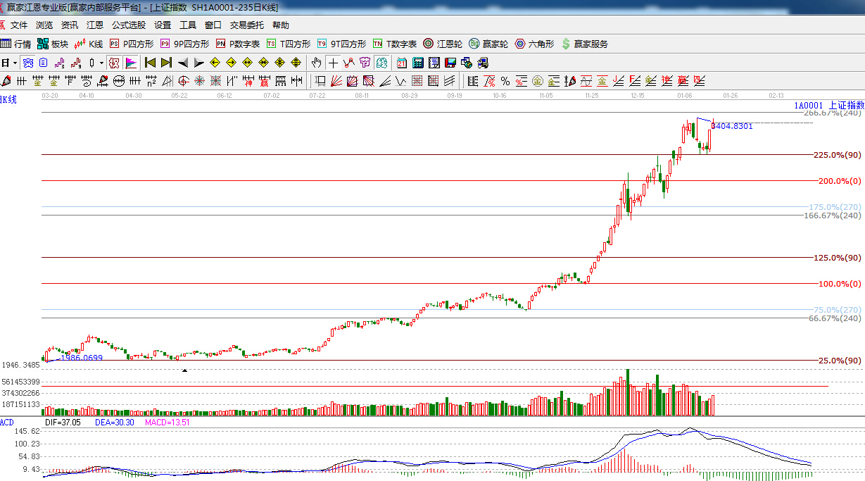 ★依據(jù)贏家江恩理論系統(tǒng)波段百分比提示:滬指在江恩90度支撐位止跌反彈,今日突破180度3337點(diǎn),上方阻力依然是240度,270度 ,3440點(diǎn),3490點(diǎn)。