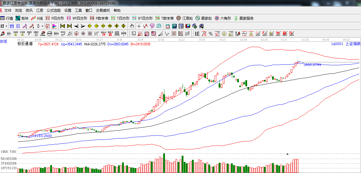 極反通道提示:今日在極反通道藍色外軌線之上維持震蕩走勢,終盤十字星報收,外軌線支撐不破,繼續(xù)看多。
