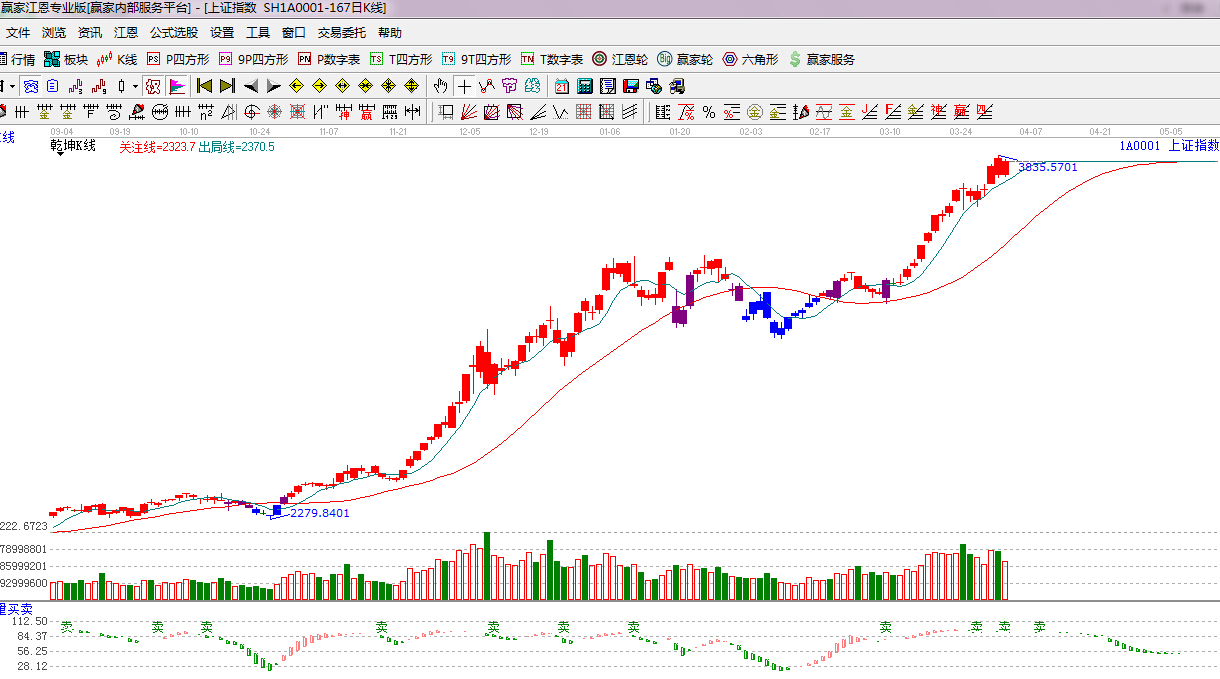江恩看盤綜述:依據(jù)贏家江恩技術(shù)工具分析得出:周三滬指繼續(xù)強勢上行,收盤突破江恩90度3783點并站上3800點,成交量仍然維持在萬億水平,市場交投依舊活躍,但外軌線之下,順勢的同時并保留一份謹(jǐn)慎,操作上,繼續(xù)布局滯漲品種以及年報超預(yù)期的個股。具體可以關(guān)注大消費、環(huán)保、醫(yī)藥等年后漲幅相對落后的板塊,逢盤中急漲,要理性對待,切莫盲目追高。