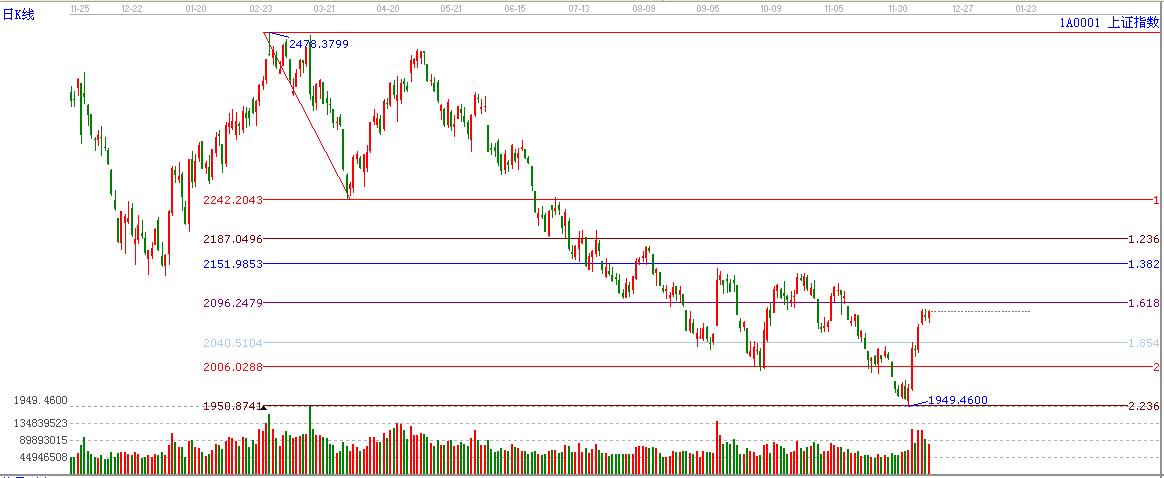 綜上所述:大盤處于極反通道生命線2063附近,上方黃金價(jià)格延伸線1.618壓力2100.短期圍繞極反通道震蕩為主。