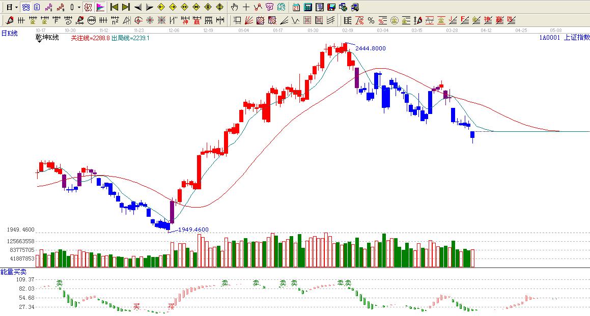 ☆依據(jù)贏家乾坤k線提示:大盤處于藍(lán)色區(qū)域內(nèi),看空。