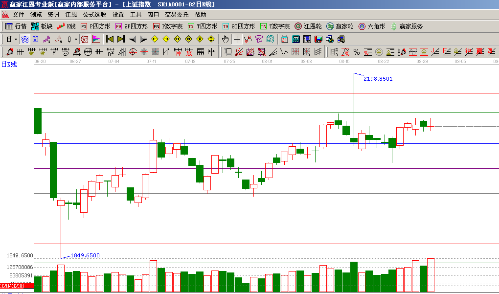 ☆依據贏家江恩系統(tǒng)波段百分比延伸提示:百分比45度位置是2130點位置,120度是2070點位置,K線運行在此區(qū)間下為支撐上為阻力;(2)