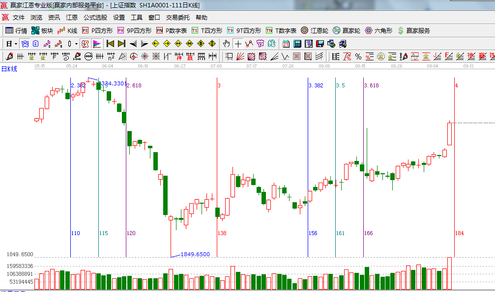 ★依據(jù)贏家江恩系統(tǒng)極反通道提示:日線突破外軌線收盤(pán)站在上方,此線成為當(dāng)前支撐,依據(jù)規(guī)則站穩(wěn)一線看高一線,失守一線看低一線,近期觀察此線得失;
