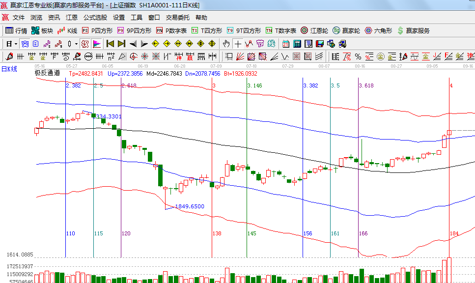 ★依據贏家江恩系統極反通道提示:放量站穩(wěn)外軌線,后期如有量能配合將震蕩上攻紅色線;