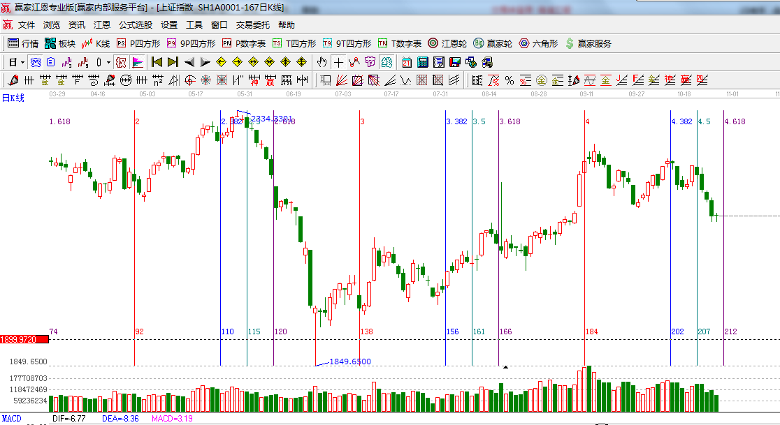 ★依據贏家江恩系統(tǒng)極反通道提示:MACD柱子如近兩日不在加長,則會對日線跌破生命線展開修復動作,整體策略以在生命線線下弱勢行情應對,以生命線的得失來調整倉位;