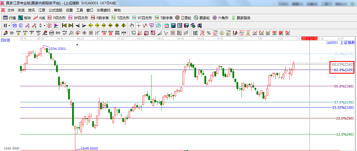 ☆依據(jù)贏家江恩系統(tǒng)波段百分比提示:62.5%與66.67%形成震蕩帶,此區(qū)間以上則短線、波段持股,跌破則減倉(cāng);