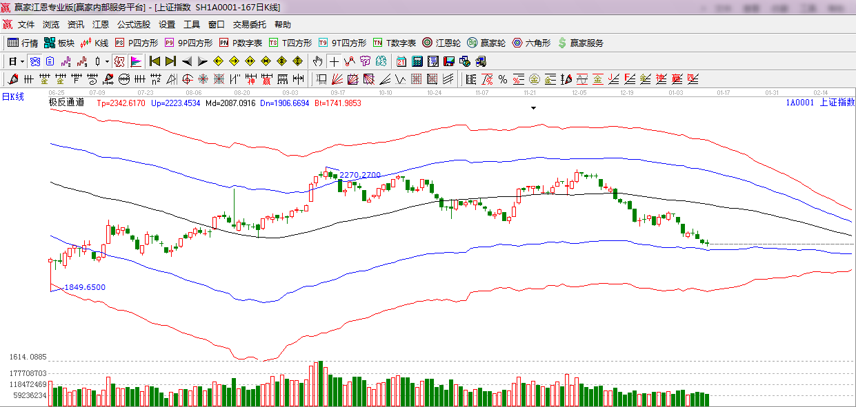 ☆  依據(jù)贏家江恩系統(tǒng)極反通道提示:目前走勢處于極反通道弱勢區(qū)域,于弱勢下軌線僅一步之遙,弱勢下軌線為1995點附近,于今天收盤僅5點之差。