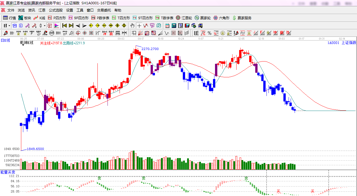 ☆  依據(jù)贏家江恩系統(tǒng)能量買賣提示:綠色柱子,能量偏弱,短期謹(jǐn)慎為主;