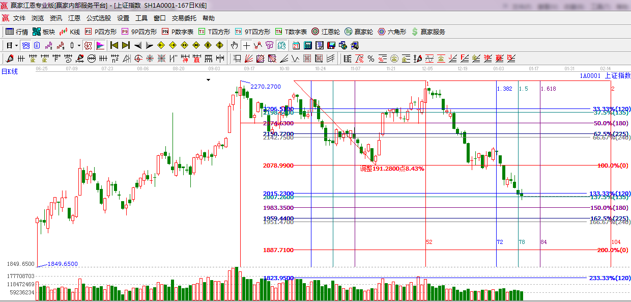 綜上所述:依據(jù)贏家江恩技術(shù)工具分析得出,今天盤面再創(chuàng)調(diào)整新低,最低點于近期提到的支撐1995點,僅僅相差5點,今天是日線時間窗,陰十字星報收,明天依然重點關(guān)注弱勢下軌線1995點支撐,此位置如能止跌將會有一波反彈,如不能形成支撐將出現(xiàn)快速下調(diào),操作方面,倉位控制3成,星級風(fēng)險提示,堅決看空,(依據(jù)物極必反原理,看空不做空)。