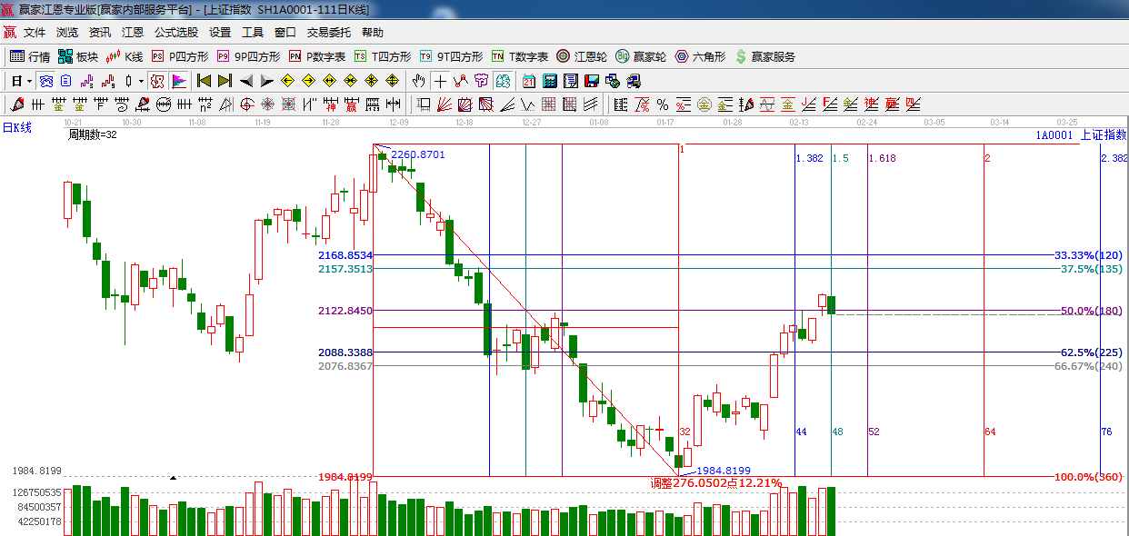 ☆依據(jù)贏家江恩系統(tǒng)黃金時(shí)間周期線提示:2月18日時(shí)間窗口,放量中陰收盤,短期注意風(fēng)險(xiǎn),下一需要留意的時(shí)間窗2月24日(黃金時(shí)間1.618的時(shí)間窗口)