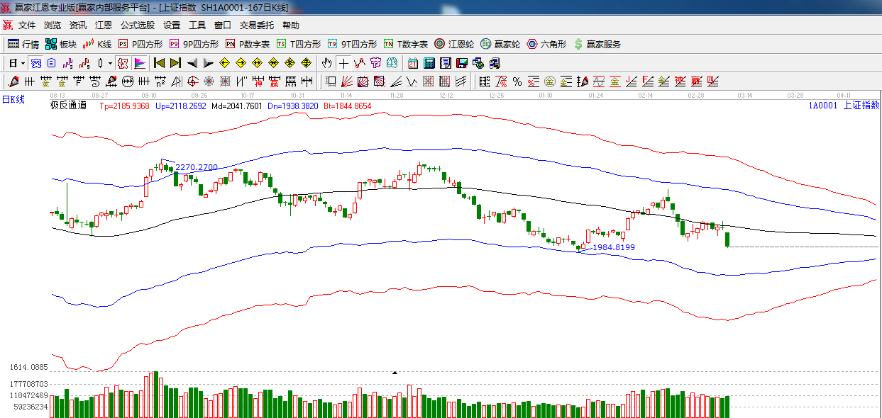 綜上所述:依據(jù)贏家江恩技術(shù)工具分析得出:早盤(pán)滬深兩市大幅低開(kāi),一路震蕩走低,明日下方關(guān)注180度1984點(diǎn),240度1951點(diǎn),短期市場(chǎng)弱勢(shì)震蕩整理為主,暫時(shí)不會(huì)出現(xiàn)大幅反彈,多看少動(dòng),等待市場(chǎng)跌出機(jī)會(huì),星級(jí)風(fēng)險(xiǎn)提示,看空。